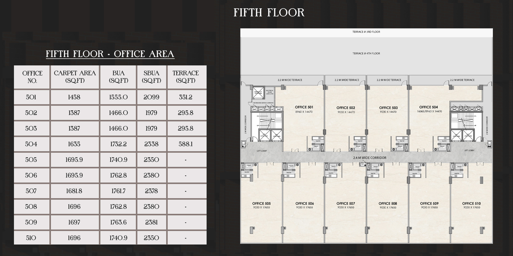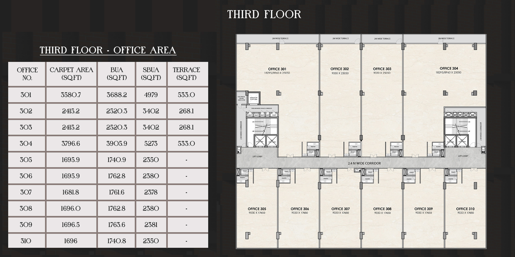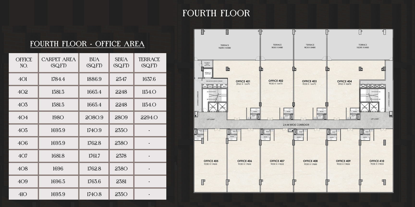 Spacious layouts with provision for centralized air conditioning.